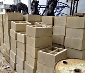 在混凝土工廠中,半干澆產品在模具中壓實或通過夯實設備成型或用壓力振搗。新澆的混凝土形態(tài)穩(wěn)定后,馬上可以脫模,然后在受控的環(huán)境中固化。用貨盤裝運儲存并出售。